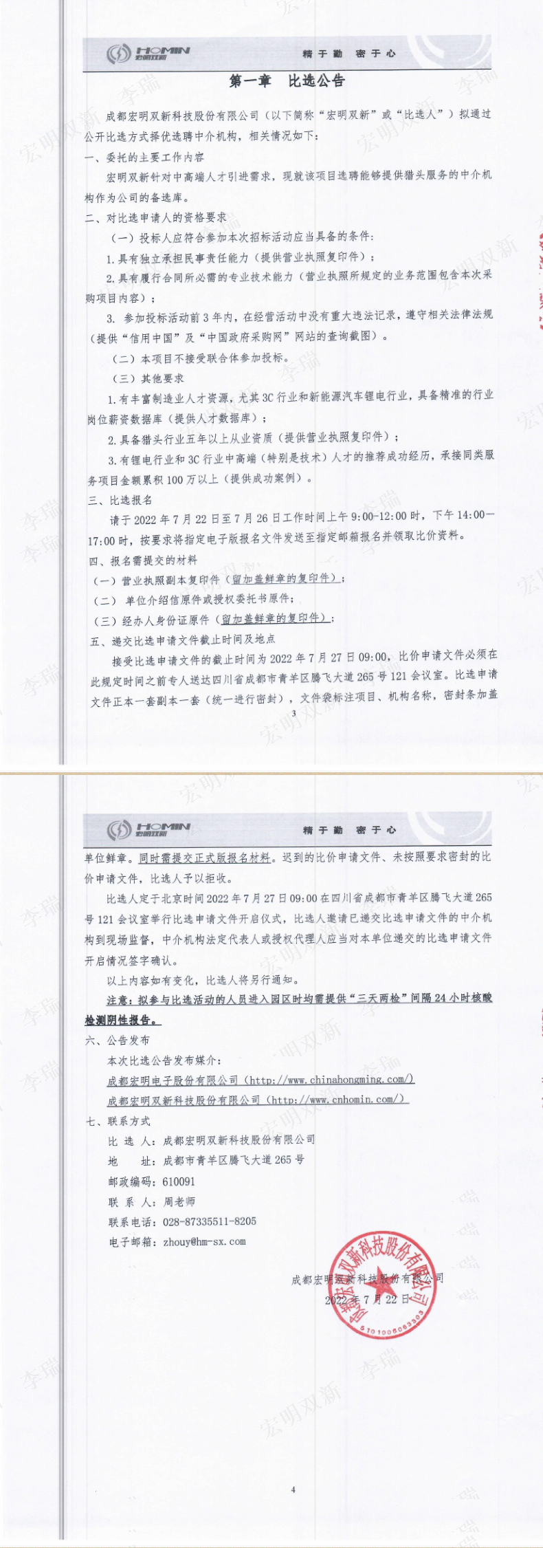 成都宏明双新科技股份有限公司2022年度安全生产现状评价供应商选聘项目结果公示