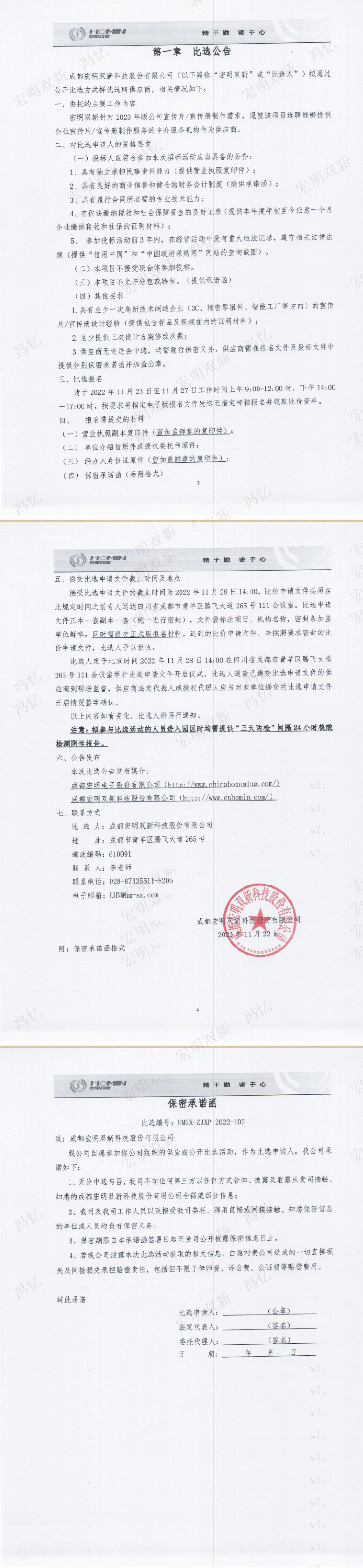 成都宏明双新科技股份有限公司2023年版公司宣传片宣传册制作供应商选聘项目公开比选公告