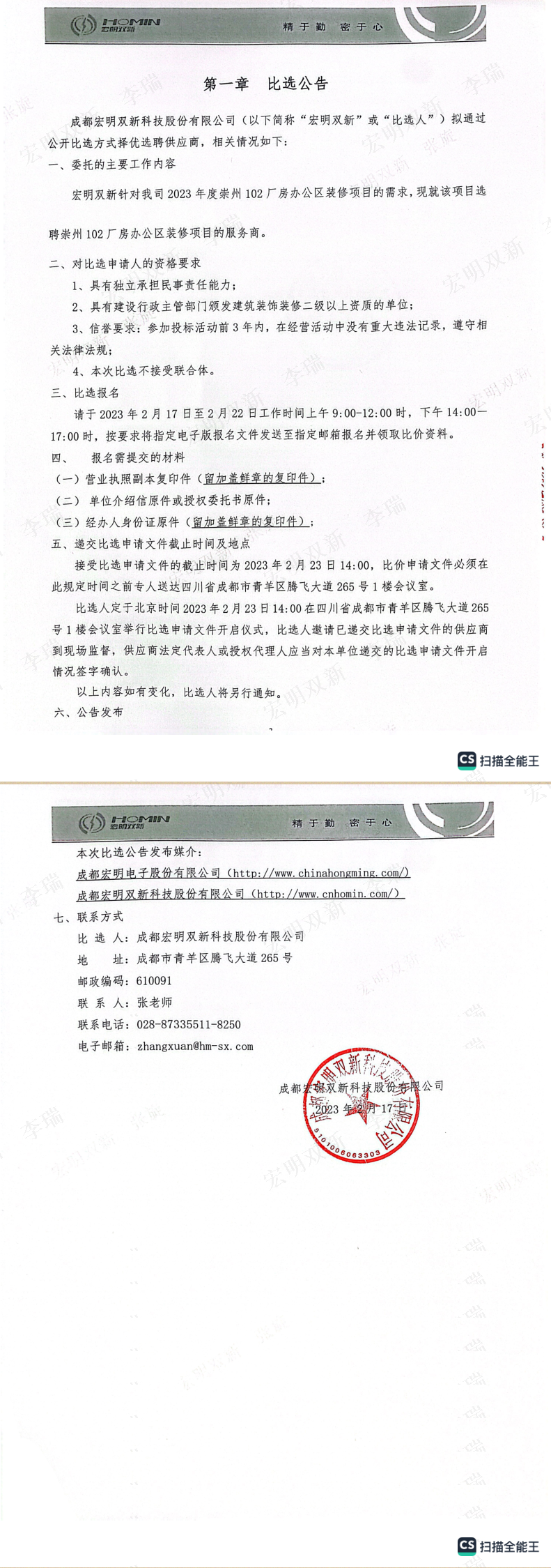 成都宏明双新科技股份有限公司2023年政府项目代理申报委托服务供应商选聘项目结果公示
