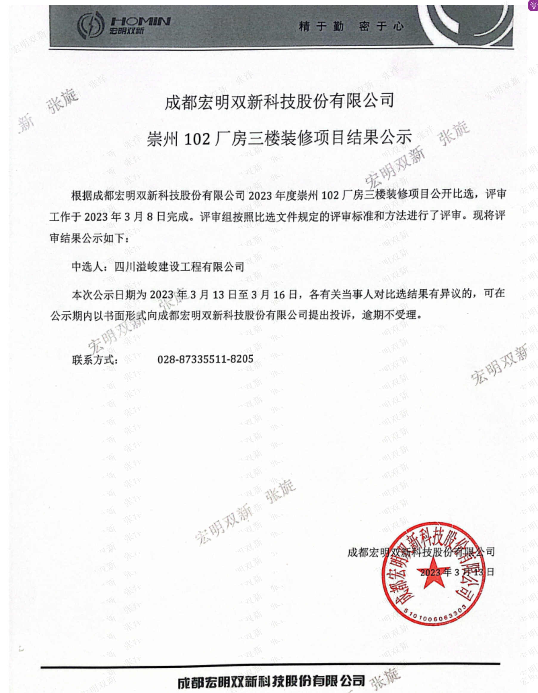 崇州102厂房三楼装修项目结果公示