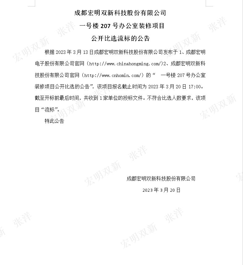 成都宏明双新科技股份有限公司 2023年度职业病危害现状评价供应商选聘项目公开比选公告